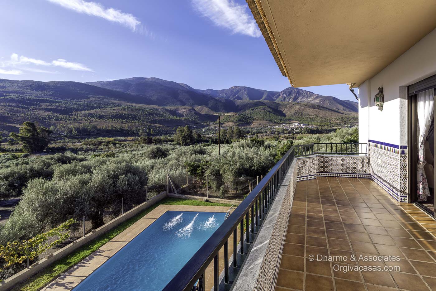 The house is built on two storeys with the main rooms on the upper level. These are the four double bedrooms, bathroom, living room, kitchen-diner and walk-in pantry. All the bedrooms are spacious and appealing and one bedroom has an en suite bathroom. The airy living room has the benefit of an open fireplace as a feature and a balcony sun terrace (10m2) looking out to superb views of the Sierra Lujar. The fully fitted kitchen-diner is smart and of a superior standard. The convenient walk-in pantry leads off from the kitchen.